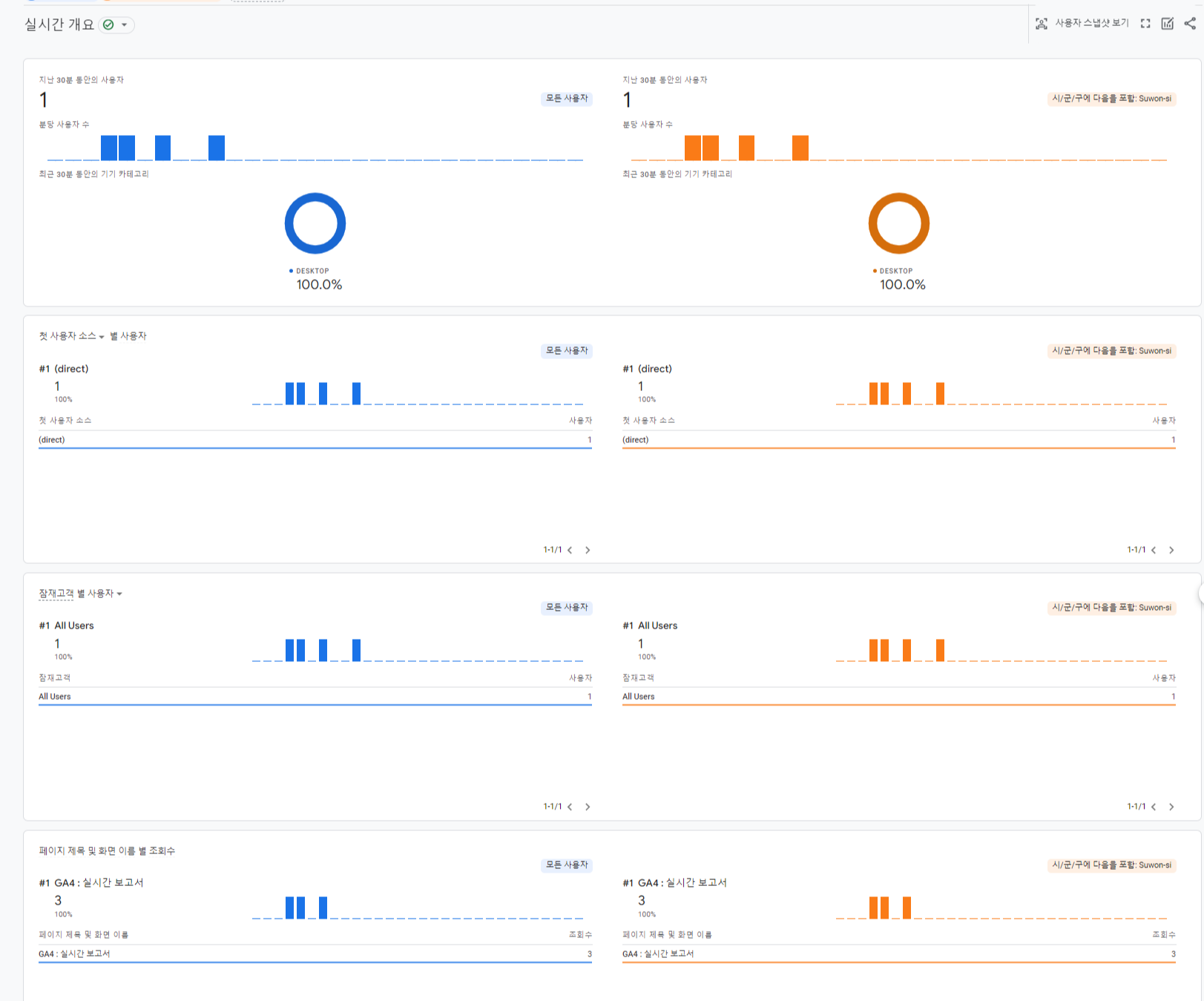 오른쪽에 있는 주황색 차트가 생성된 비교 차트이고 이렇게 하면 전체 실시간 사용자와 선택한 지역의 실시간 사용자를 비교할 수 있습니다.