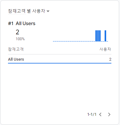 그리고 이 잠재고객 별 사용자 보고서는 현재 이용자 중 잠재고객 유형별로 몇명의 사용자가 이용중인지를 보여줍니다.