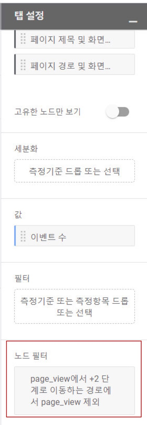 또한, 탭 설정 하단의 노드 필터를 통해 확인 가능합니다.