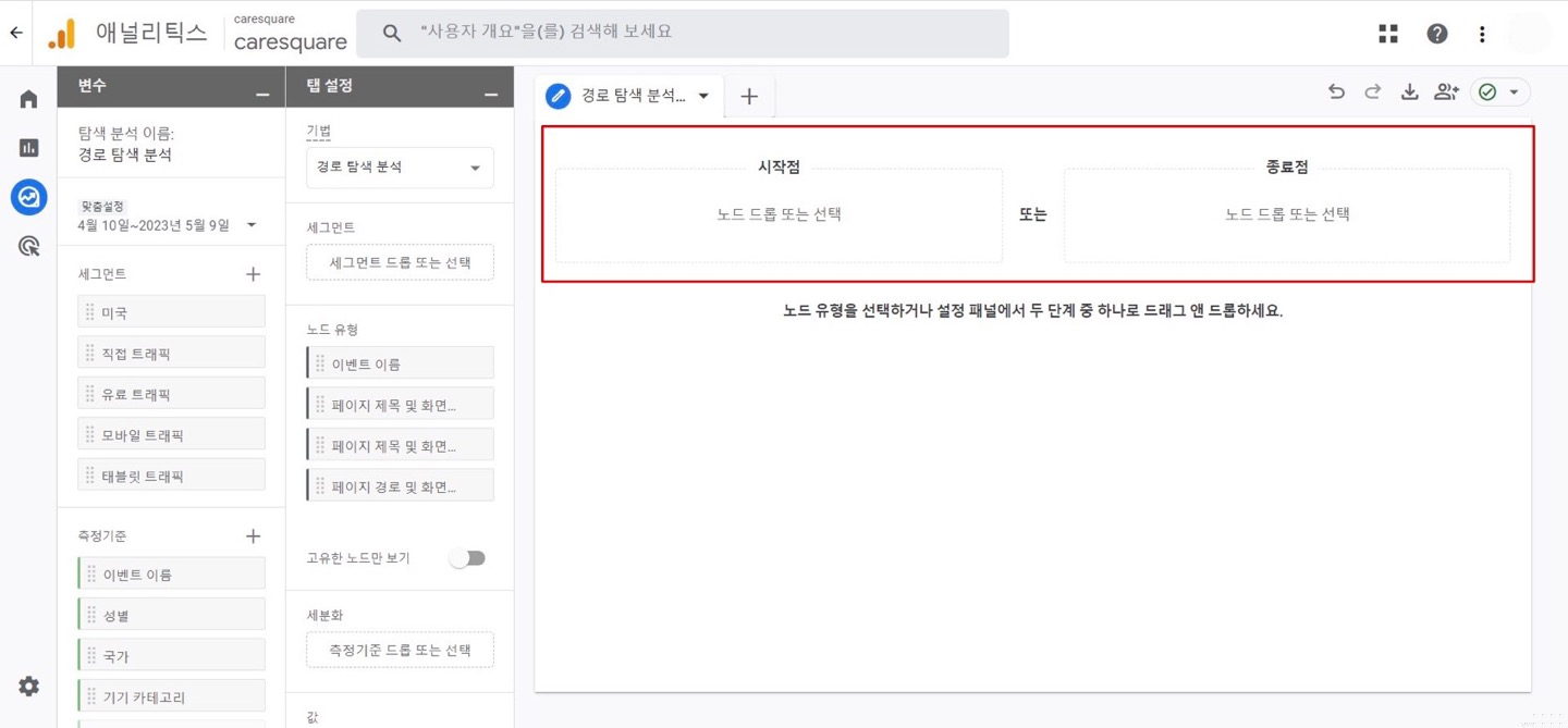 종료점: 탐색 분석하려는 경로가 끝나는 화면 또는 이벤트입니다.