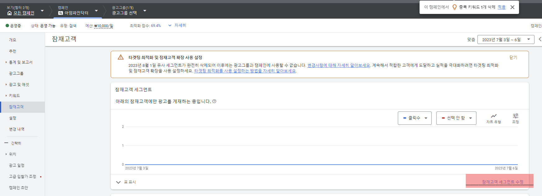 2. [잠재고객 세그먼트 수정] 을 클릭합니다.