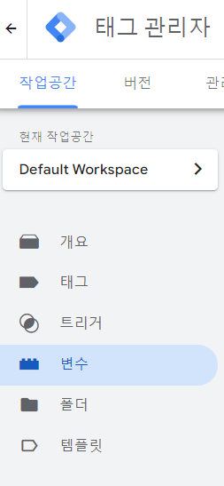 1. 구글태그매니저(GTM)으로 해당 속성에 들어가 변수를 클릭합니다.