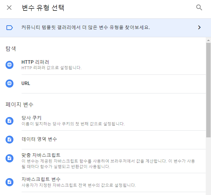 3. 변수 유형으로 맞춤 자바스크립트를 선택합니다.
