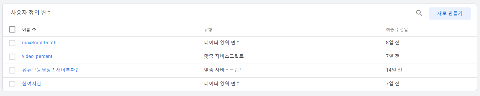 아래 링크는 동영상 재생 및 스크롤 깊이를 추적하는 이벤트 생성 방법입니다. 참고하시길바랍니다.